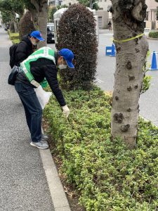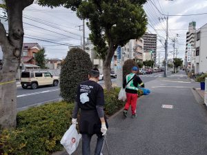 定例の美化活動。第十四中から清掃事務所までの尾竹橋通りを清掃しました。子ども達にまちを綺麗にする大人の背中を見せたい。そんな想いで始まった清掃活動です。