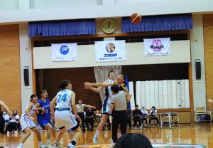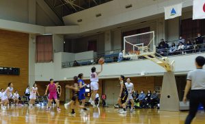 関東社会人VS関東大学。迫力ある試合を観戦するだけでなく、午前中には親子バスケット体験会も行なわれました。