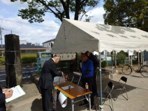 伊興区民事務所管内の各テントを回りました。先日の強風でテントが飛んでしまいそうになった場所も聞きました。地域の安全も町会自治会の皆様に支えられています。